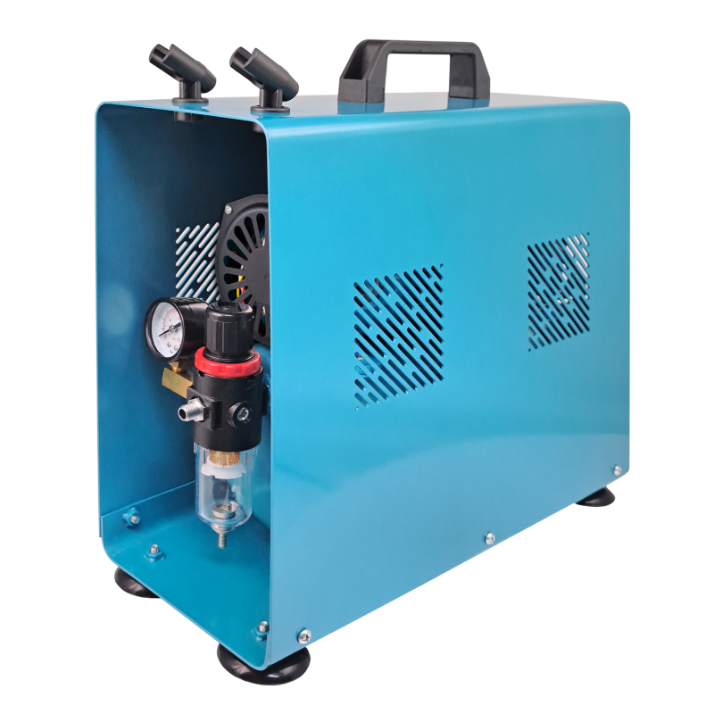 Profi-AirBrush Kompressor Universal II-C mit Schutzgehäuse ist ein sehr leiser mini Airbrush Kompressor, der sich für hohe Ansprüche im Hobbybereich und Profi-Anwendungen eignet. Energiesparsam durch Kompressor-Abschaltautomatik (4bar-Stop / 3bar-Start)! Anfänger und Profis können das Gerät in der Bildgestaltung, im Kunsthandwerk, Kosmetik, Tattoo, Körperfarben, Hobby, Modellspielzeug, Nail-Design uvm. verwenden. Den Kompressor Universal II-C kann man genauso als Luftquelle in Chemieindustrie, Laboratorien, medizinischen Bereichen, oder im Umweltschütz, Aquakultur, Lebensmittelindustrie und so weiter einsetzen. Er ist öl- und wartungsfrei.