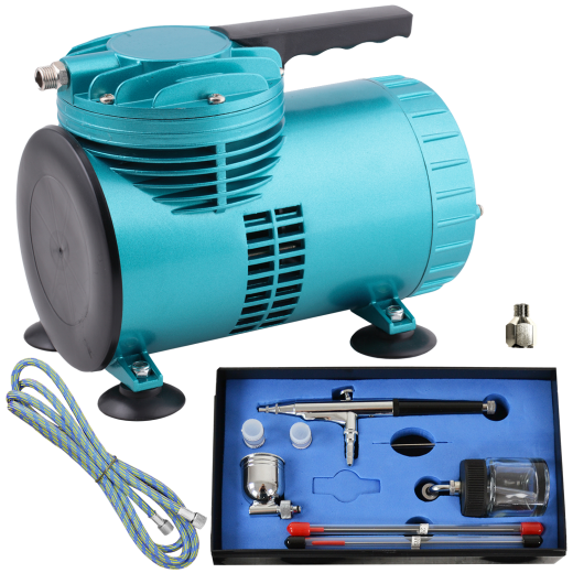 Dieser öl- und wartungsfreie Airbrush Kompressor ist für Arbeiten mit allen handelsüblichen Airbrushfarben geeignet. Mit nur 54dB ermöglicht er angenehmes Arbeiten auch in kleineren, geschlossenen Räumen. Sein kompaktes Design und der integrierte Tragegriff erleichtern den mobilen Einsatz.